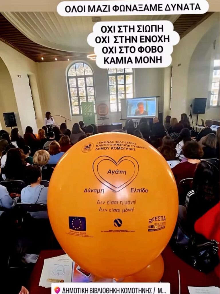 Η Δημοτική Βιβλιοθήκη Κομοτηνής, στο πλαίσιο των δράσεων που υλοποιούνται με την ΚΟΙΝΣΕΠ «Κομοτηνή Εν Δράσει», ο Ξενώνας Φιλοξενίας Κακοποιημένων Γυναικών Ξενώνας Φιλοξενίας Γυναικών Δήμου Κομοτηνής ο Όμιλος Φιλαναγνωσίας του 3ου Πειραματικού ΓΕΛ , το Λογοτεχνικό Τμήμα της Κοινότητας Νέων Κομοτηνής Κοινότητα Νέων Κομοτηνής και η Διεύθυνση Κοινωνικών Πολιτικών του Δήμου Κομοτηνής σας προσκαλούν στην εκδήλωση: