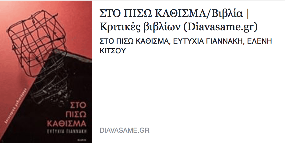 Είναι νέα στο χώρο (πρόκειται μόλις για το πρώτο της αστυνομικό μυθιστόρημα), αλλά αυτό δε την εμπόδισε να κάνει αισθητή την παρουσία της και να μας χαρίσει ένα από τα πιο ενδιαφέροντα ελληνικά αστυνομικά μυθιστορήματα της χρονιάς. Ο λόγος για την Ευτυχία Γιαννάκη και για το βιβλίο της «Στο Πίσω Κάθισμα» από τις εκδόσεις Ίκαρος. …
